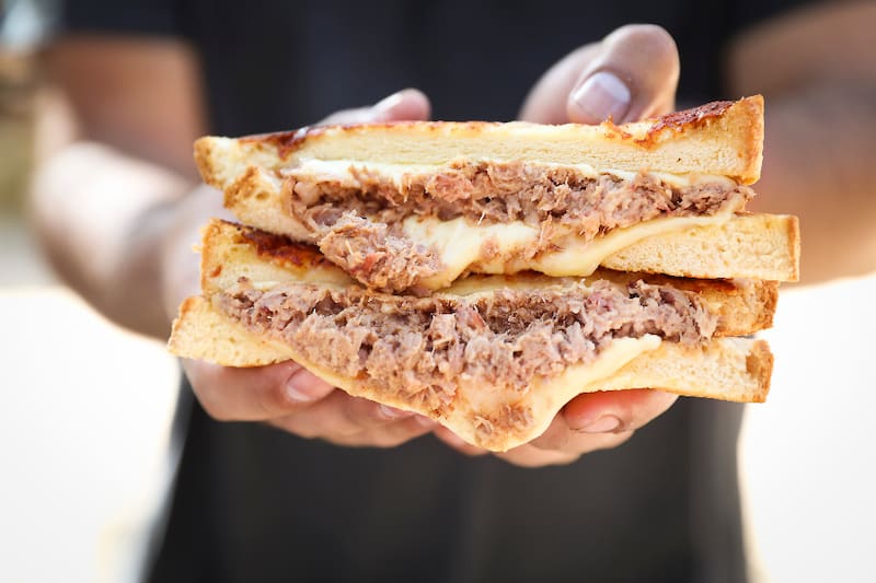 Es más, en Curaca Ribs también te puedes tentar con los sándwiches, como el grillado pulento ($ 8.500), que es uno grillado con pulled pork y queso mantecoso fundido, en pan de molde encostrado con queso gouda.