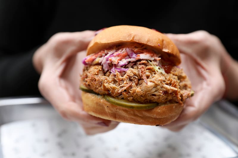 Además del sándwich de brisket ($ 9.500), de brisket ahumado, con cebolla encurtida, mostaza natural, mayonesa de la casa, barbecue y pepinos.