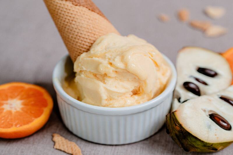Otro es el de lúcuma con dulce de leche y merenguitos; o el de chirimoya alegre, un sorbete, al agua, bien chileno.