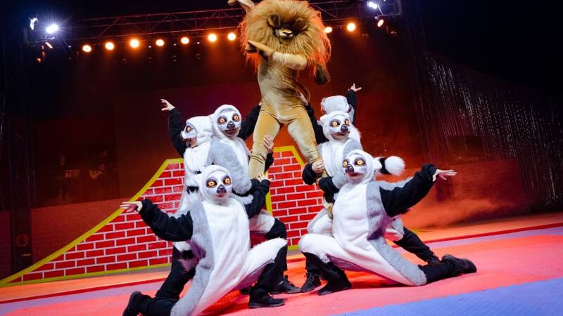 Eso mismos personas -Álex el león, Marty la cebra, Gloria la hipopótamo y Melman la jirafa- son los protagonistas en De Madagascar al Intercomunal, el show creado por Fantástico Circo Teatro, la compañía de Vasco Moulian, responsable también de la exitosa versión de El libro de la selva.