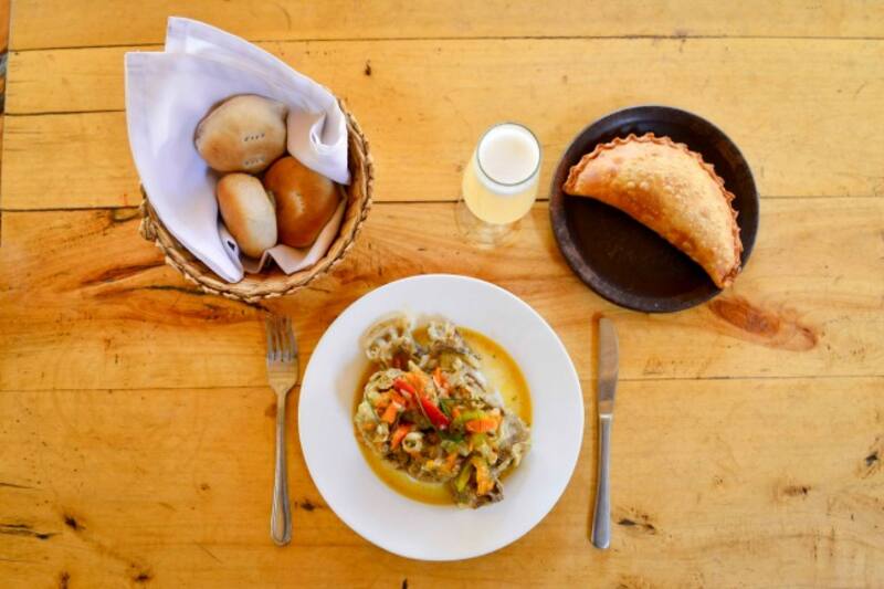 Siéntese en el comedor al aire libre, fresco gracias a un toldo de totora y adornado con muebles de álamo y madera de cactus. Ahí no se pierda las empanadas fritas de queso de cabra y camarones (cuando hay de río se hace con estos) que cuestan $ 2.000 c/u, y el célebre cabrito a la cacerola ($ 6.500), blandísimo, muy sabroso y menos pesado que el cordero, que le servirán con arroz y ensalada surtida.