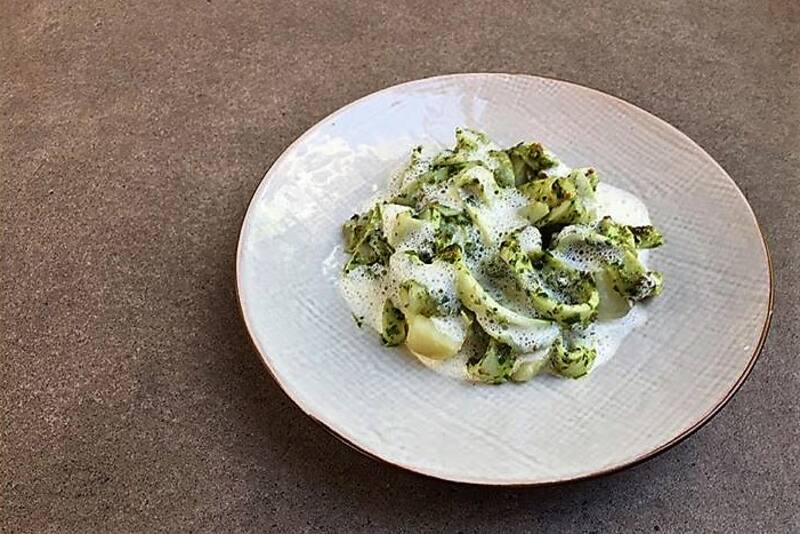 Además de un "Consomé de pato" con un toque de shitakes y un "Canelón" de zucchini rellenos de ricotta casera y garbanzos crujientes.
