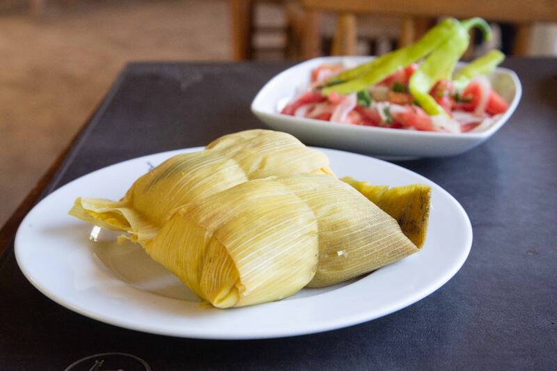 De entrada, las humitas ($ 9.500 las dos), de buen porte y nada de secas, que llegan acompañadas de ensalada de tomate o chilena.