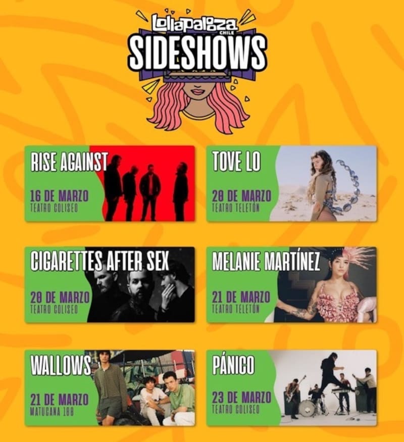 Hasta ahora, son seis los sideshows de Lollapalooza Chile 2023 que se anunciaron, los que se realizarán entre los días previos y posteriores al festival en Cerrillos.