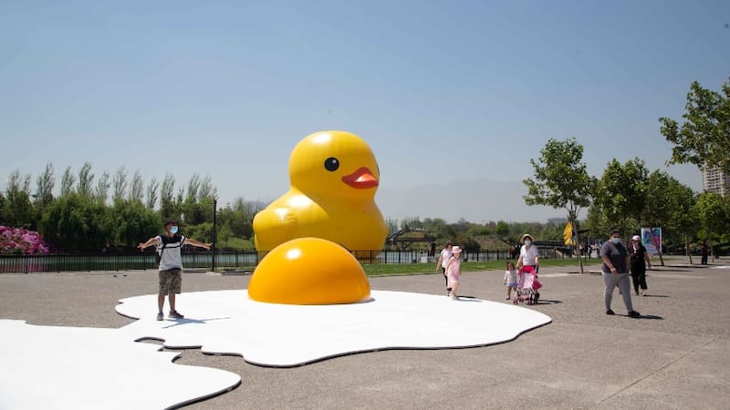 Hasta el próximo jueves, en este pulmón verde de Santiago verás gratis una serie de obras urbanas de gran formato, entre ellas un robot hecho de desechos, un troll de madera y el famoso pato de hule.