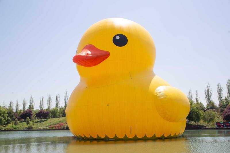Ahora el pato de hule gigante del holandés Florentijn Hofman flotará durante ocho días en la laguna del parque junto al río Mapocho.