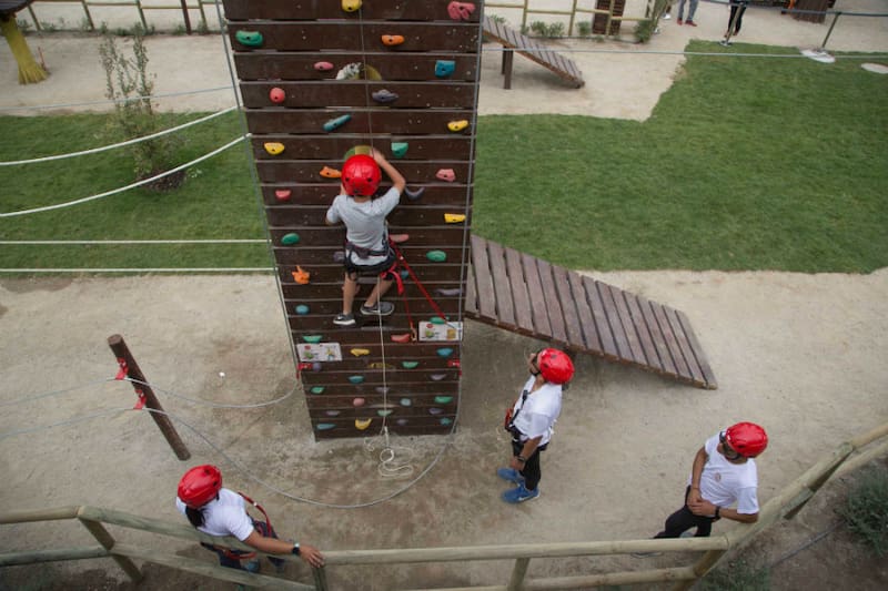 Eso sí, esta pared es sólo para las personas que miden más de 1,55 metros. Los más pequeños tienen otros circuitos que incluye un boulder de siete metros de alto.
