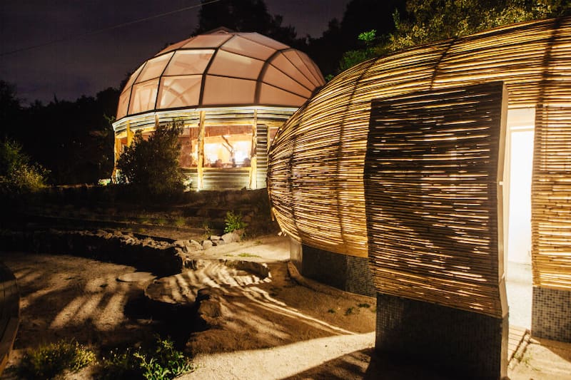 Ahí, alojas en unos domos, que tienen una forma particular, la de una pelota de rugby, con capacidad para dos a cuatro pasajeros y comodidades como servicio de cama, baño privado, estufa y hasta terraza con hamacas.