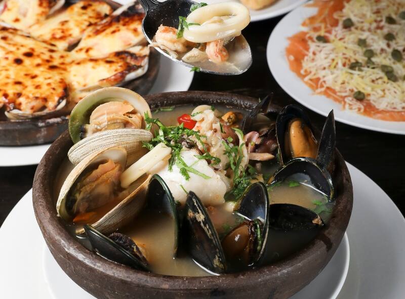 Otro insuperable, es la Cazuela sureña de mar y tierra ($ 10.000), con cholga seca ahumada, piure, luche, cochayuyo, verduras y sapones, que son unas masitas de harina y huevo.