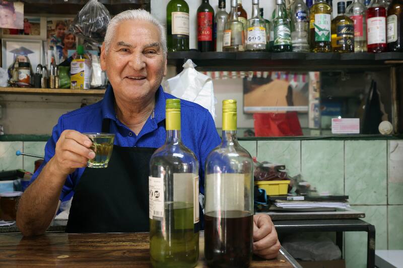 Además, en la barra la acompaña Don Hernán Castillo, quien trabaja hace más de 34 años en el lugar. Es el encargado de hacer el apiado de agua ardiente y apio, junto con el enguindado, que reparte a la clientela a modo de bajativo y cortesía.