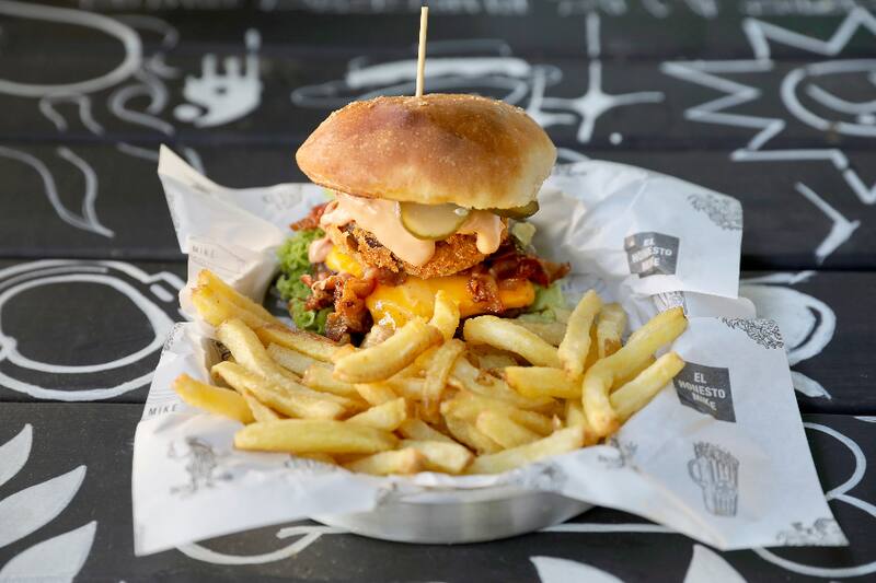 "Ven a llenarte las tripas a El Honesto Mike" es la invitación de este bar cervecero, famoso por sus chelas y sus hambguesas.