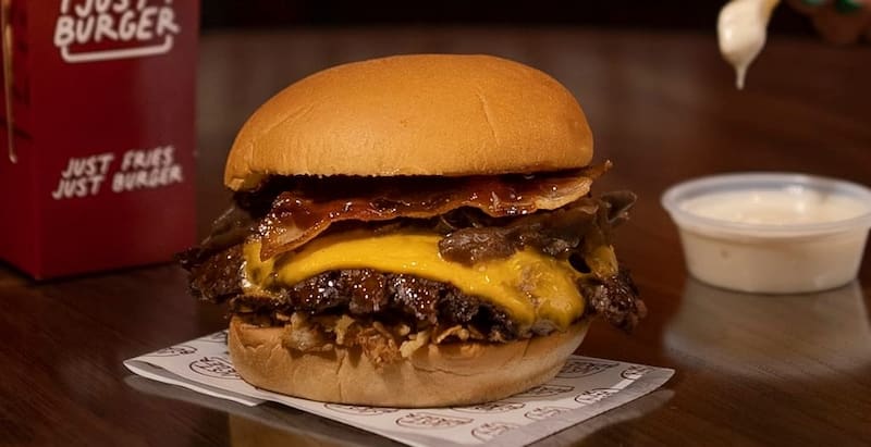 La gracia es que Just Burger está en su “Burger Week”, por lo que si pides una hamburguesa por delivery en su sitio web te encontrarás con opciones desde los $ 2.990, como la Just Cheese Simple, o la Just Classic Simple, con tomate, lechuga, queso cheddar, pepinillos y salsa Just.