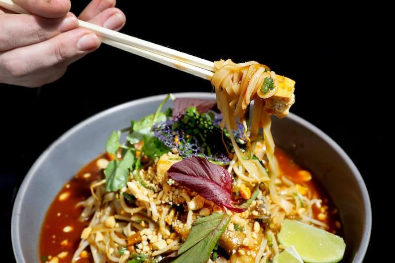 Además de una bien lograda sazón, de la que te darás cuenta cuando pruebes su Pad Thai ($ 13.990) por ejemplo, de fideos de arroz salteados con cebollín , diente de dragón, huevo, tofu y maní con salsa de tamarindo.