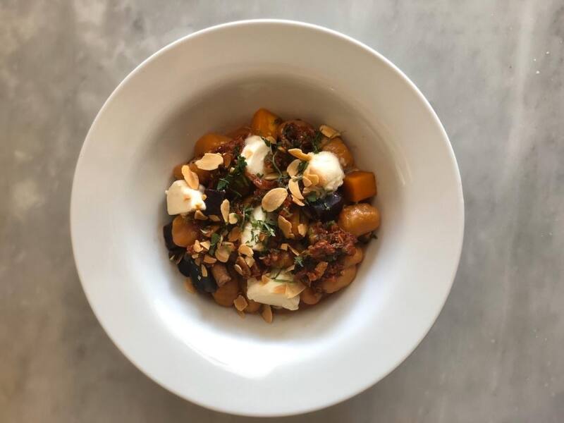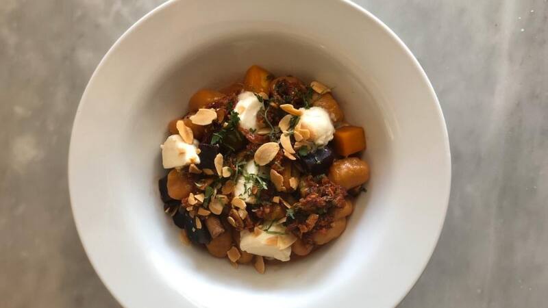 O El “bowl marroquí” ($ 7.900), que es un couscous de betarraga, con hummus y semillas de sésamo, kale salteado, palta, lentejas con menta y perejil, aceitunas, zapallo italiano asado, cranberries, verduras encurtidas y tofu. Eso más un aderezo de menta, perejil y tahine.