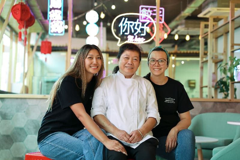 La cocinera de Pekín que atiende junto a sus hijas, las “Lays”, Laymay, Layfan, Layquin y Laayyin.