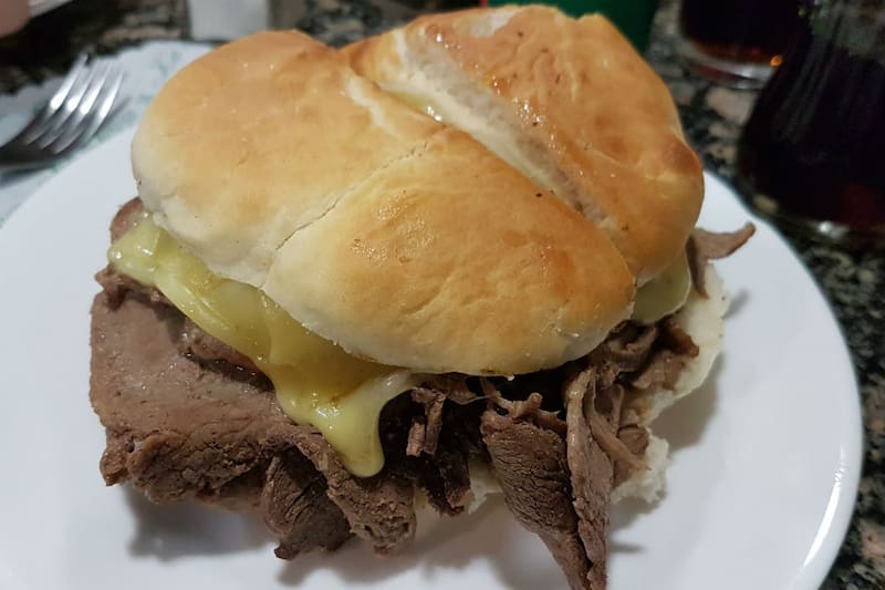Si vas con mucha hambre mejor pide directo el barros luco “normal” ($11.500), que en realidad es enorme: lleva 300 gramos de carne y 110 gramos de queso. Alcanza perfectamente para dos personas moderadas.