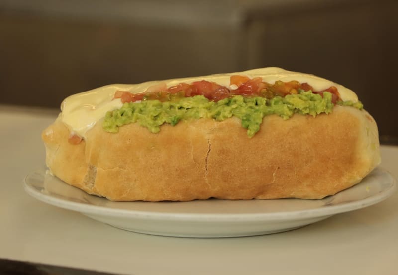 Pero no es solo longitud, porque también destacan la calidad de sus ingredientes: el pan lengua del barrio, de la Panadería Don Vitoko en Peñalolén, más palta hass que traen de Cabildo, en la provincia de Petorca, Región de Valparaíso.