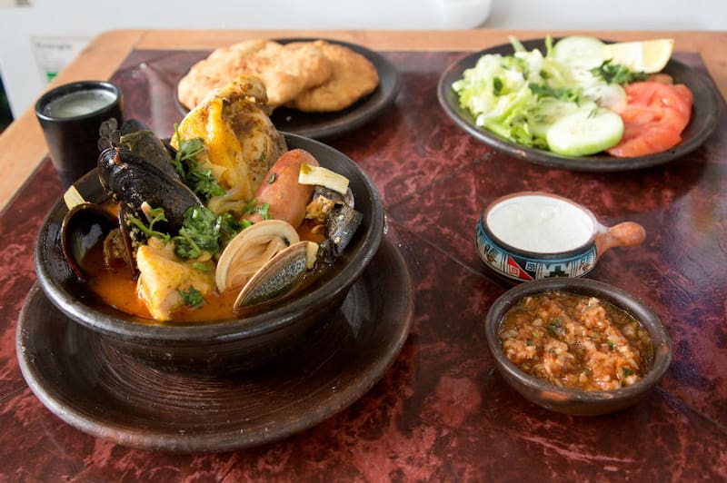 El menú más caro, el de $ 5.000, es el del pullmay mapuche, un contundente caldo "levanta muertos", que trae choritos, almejas y longanizas.