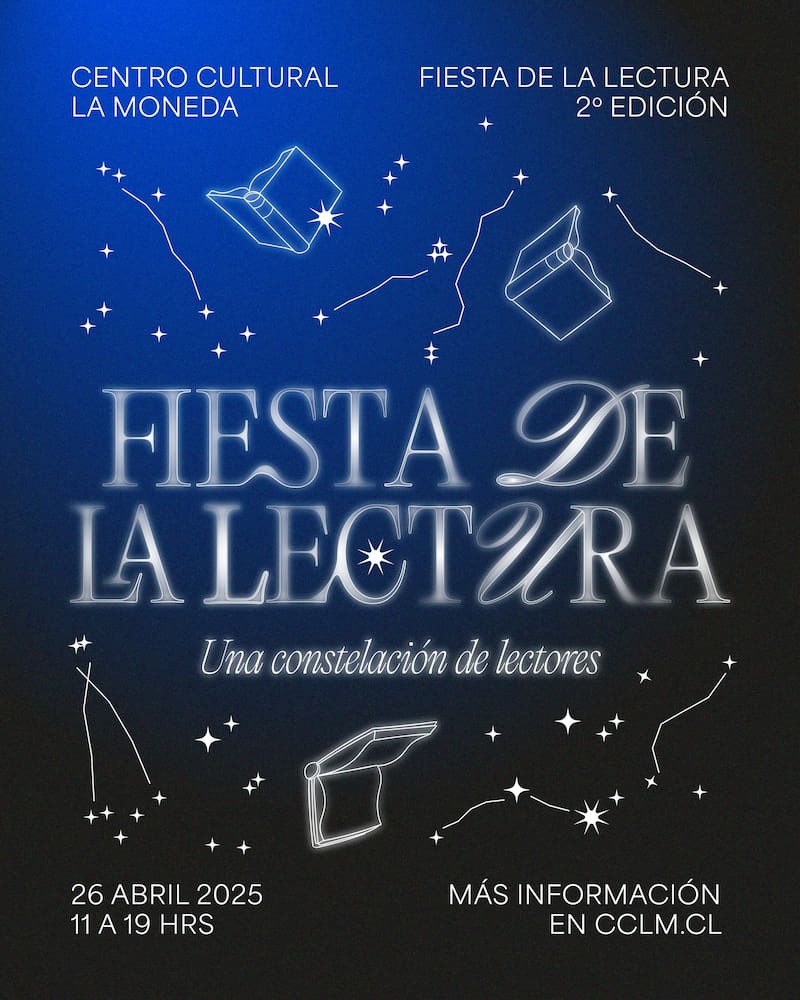 En el Centro Cultural La Moneda —ese maravilloso espacio subterráneo bajo el Palacio de Gobierno— se hará por segundo año la Fiesta de la Lectura. Esta es una iniciativa del Museo de Arte Latinoamericano de Buenos Aires (Malba), que se hace desde 2005 en la capital argentina para "promover el contacto directo del público con la lectura y los libros" en el museo.