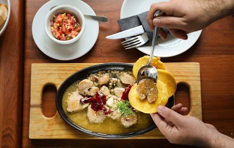 También en una de las novedades de su carta, las criadillas al pil pil ($ 8.900), que vienen con todo su caldito y sopaipillas para sopear.