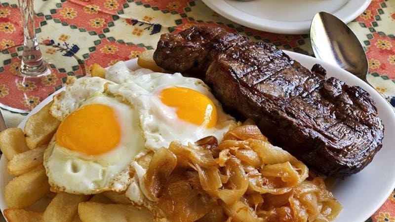 Es decir, el "bistec a lo pobre", que es un lomo liso en el punto que elijas, acompañado de una buena cantidad de papas fritas, cebolla caramelizada y los dos huevos fritos de rigor, costará $ 8.100.