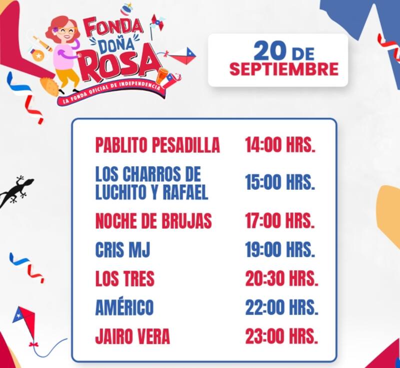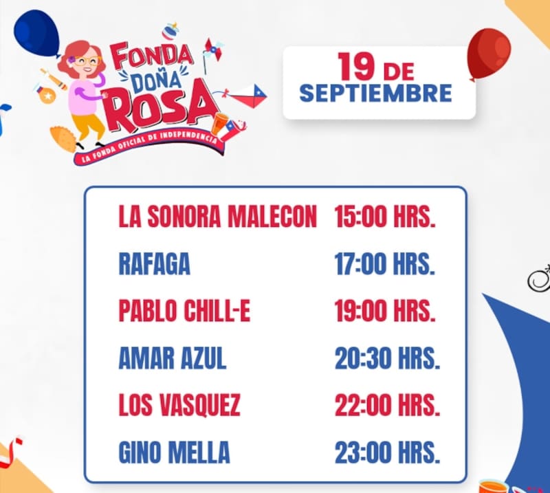 Puedes revisar a continuación los horarios por día de la Fonda Doña Rosa y también ver esta guía con más fondas para celebrar las Fiestas Patrias 2024.