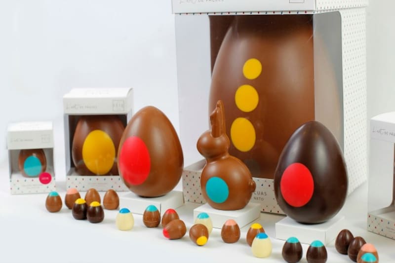 Para los niños hay una caja que reúne sus sabores favoritos, con chocolate de leche, blancos o amargos, rellenos con dulce de leche, crema de caramelo y praliné ($ 6.400, nueve huevitos; $ 13.400 los 27). También tienen formatos más grandes ($ 3.900 los 55 g, $ 7.300 los 150 g) y sin azúcar ($ 4.500 los 55 g, $ 7.900 los 150 g). Si quiere lucirse con uno gigante, está el que pesa más de un kilo ($ 52.800).