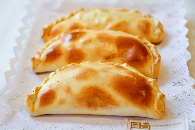 Es decir, de menor tamaño, con un pino de cebolla, lentamente caramelizada en manteca y un toque de ají color, más una masa agalletada, de campo. Cuestan $ 23.400 las 12. Llegan congeladas, aunque las puedes pedir listas, con un día de anticipación.