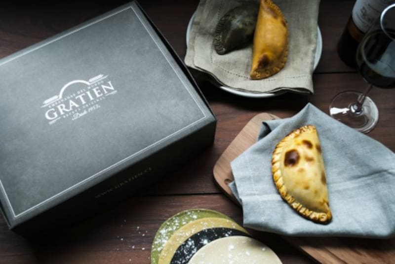 Para este día prepararon un pack especial, que se lo llevan a la puerta de su casa: una cajita con empanadas bien especiales, porque la masa -muy delgada- está hecha con harina de almendras y los rellenos se inspiran en cocinas del mundo. La peruana, por ejemplo, es de ají de gallina, y la chilena, lleva plateada. Hay una que es de color negro, porque la masa tiene tinta de calamar. El pack (desde $ 13.686, precio que varía según el número de empanadas) incluye también una tarta dulce, un muffin y una botella de vino J. Bouchon a elección.