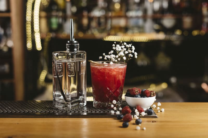 Un buen plan es sentarte en una de la mesas del patio de luz y beber el Darkness ($ 6.500), uno de sus cocteles de autor destacados, con vodka, jugo de limón, albahaca y una reducción de arándanos.