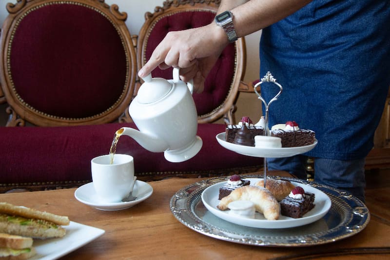 También tienen una carta que funciona tanto para el brunch como para la hora del té, con opciones como Té Reina Isabel ($ 9.990), una tetera para dos con té en hoja, con seis mini pastelitos, dos medialunas y dos brownies; o Té quiero ($ 4.990), que es una tetera individual, más una porción de kuchen, torta o pie.