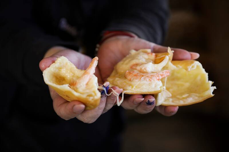 Empanadas famosas, de masa delgadita, deliciosa, que puedes probar en versiones como la de sólo queso ($ 1.300) con un toque de orégano; queso camarón ($ 3.900); de salmón ($ 1.950) y una deliciosa de cochayuyo ($ 1.400).