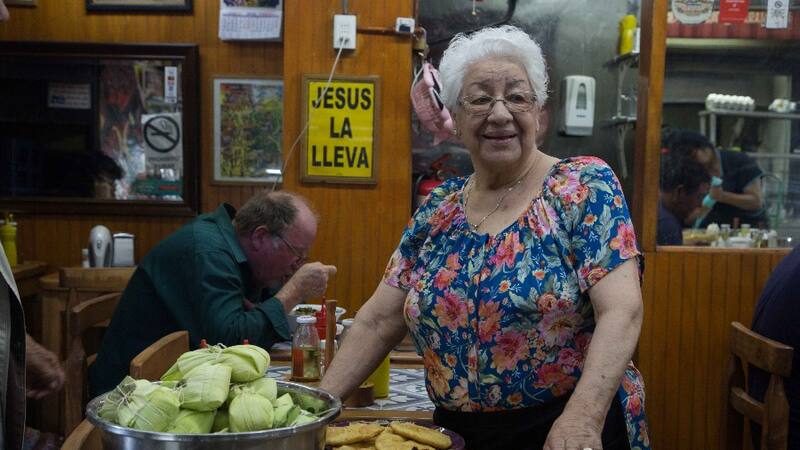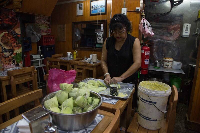 En Donde La Tita, a cargo de las humitas ($ 2.500), encuentras a Judith Venegas, hija de Doña Tita, quien aprendió a hacerlas hace más de más de cuarenta años.