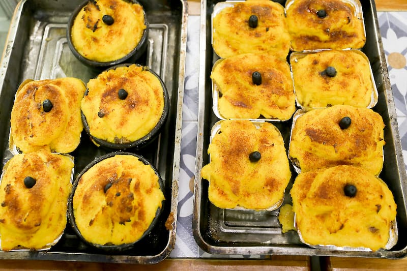 Otro imperdible en Donde La Tita es el pastel de choclo ($ 6.000), que llega en librillo de greda, acompañado del consomé y la ensalada chilena.