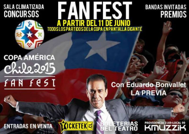 Una oportunidad tanto única como freak: Si compras tu entrada para el Fan Fest que organiza el Teatro Caupolicán, podrás ver en vivo y en directo una charla de análisis deportivo de Eduardo Bonvallet. El polémico comentarista y ex futbolista entretendrá a los asistentes del recinto de San Diego en la previa de todos los partidos de Chile en la fase de grupos, donde con su clásica pizarra y particular estilo, opinará sobre las maneras en las que la Roja puede superar el encuentro. Cada jornada (el 11, 15 y 19 de junio) comenzará a las 6.30 PM con la charla del "Gurú", y dos horas después se podrá disfrutar del partido en una pantalla de 70 metros cuadrados, y una fiesta post encuentro. Las entradas se venden a través de Ticketek.