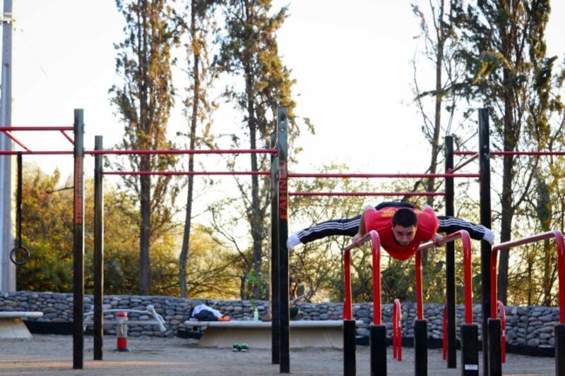 Hace un mes se inauguró otro gimnasio al aire libre, pero esta vez en la plaza La Reina, la que está justo en la esquina de la avenida Francisco Bilbao con la calle Mariano Sánchez Fontecilla. Ahí la misma marca instaló más de diez barras que van desde los 10 centímetros hasta los casi tres metros de alto y que se encuentran al lado del canal San Carlos. El lugar es ideal para mejorar la musculatura, porque al estar colgado, podrá hacer ejercicios de fuerza y abdominales en el aire, los que consisten en levantar las piernas mientras se sostiene de los brazos. También hay una barra con forma de escalera que está pensada para la elongación, porque ahí podrá estirar las piernas haciendo un ángulo de 90º, para luego agacharse hasta tocar la punta de los pies.