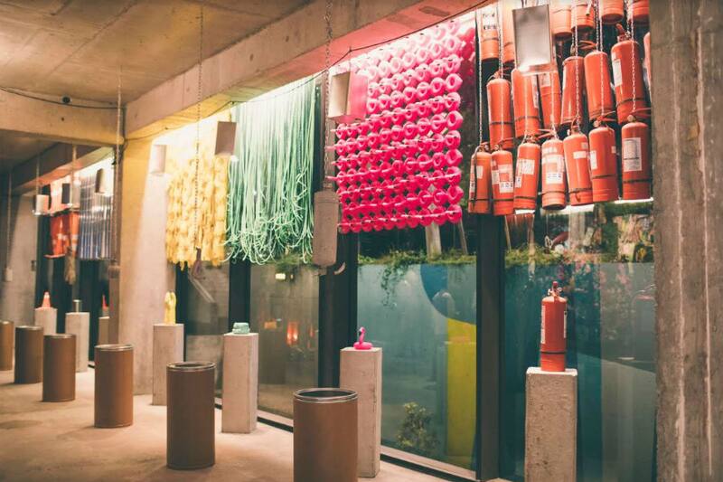 Este sábado vaya a ver lo que ahí montó el Colectivo Ecuco, formado por los artistas Santiago Errázuriz, Raimundo Arrau y Gonzalo Miralles, quienes llevaron al espacio una colorida instalación llamada Subconjuntos, hecha con objetos de uso cotidiano, como guantes, cordeles, tarros de basura, extintores y conos.