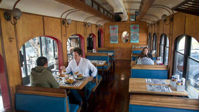 Uncle Fletch tiene un local dentro de un tren, donde puedes disfrutar una cerveza y comer en un antiguo vagón refaccionado.