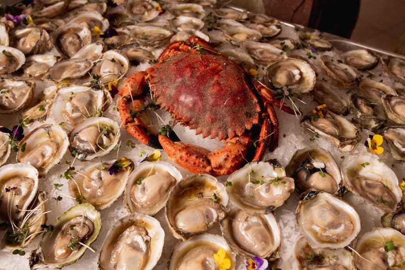 Luego, puedes seguir con algunos de los mariscos frescos, como almejas y ostras, o un cebiche, que lo arman a tu gusto, con productos del mar como atún, salmón, camarones y ostiones.