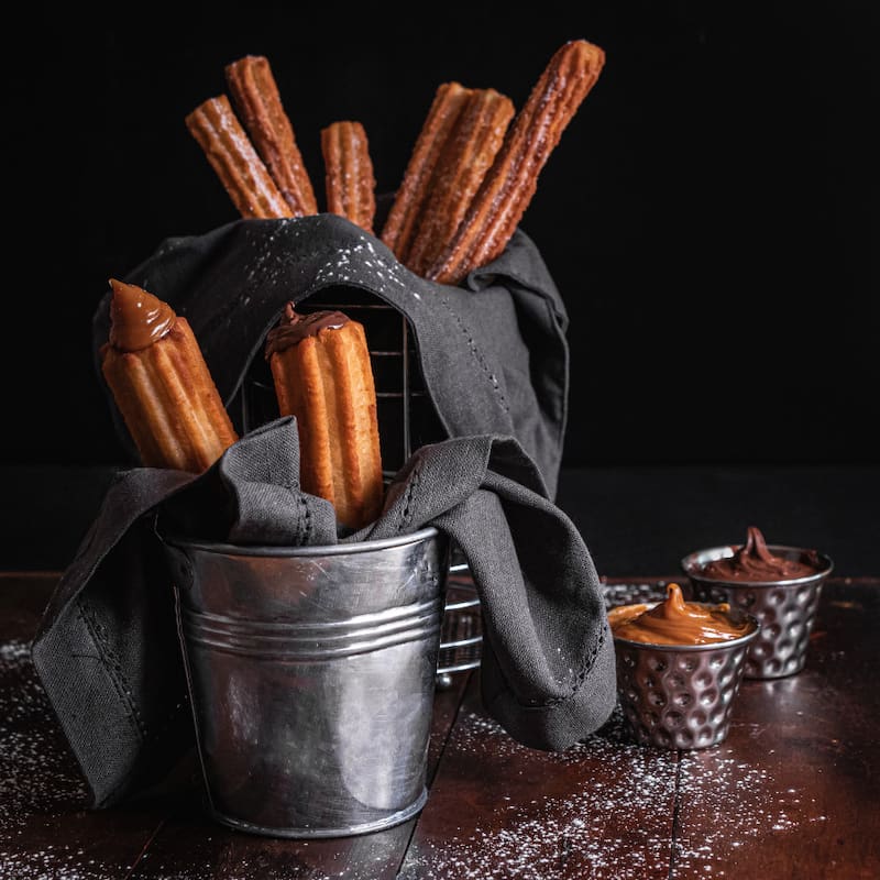 Otra delicia es la caja que tendrá el local Cada loco con su churro (foto secundaria), que tendrá seis crujientes churros españoles, más dos rellenos de dulce de leche y una salsa.