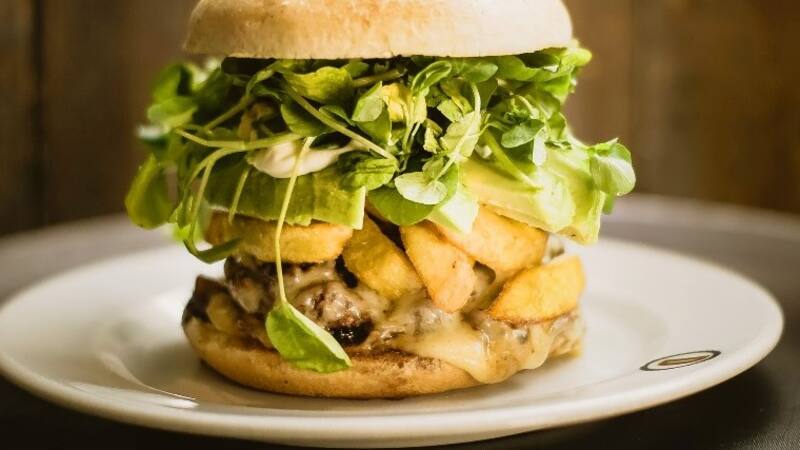Pero si se te antoja algo más goloso (por decirlo de alguna manera) te irás a la segura con la "hamburguesa francesa con papas" ($ 9.000) con un relleno que lleva doble hamburguesa, papas fritas con aceite de trufa y queso parmesano, cebolla caramelizada, queso mantecoso, palta fileteada, micro berros y salsa de mostaza (foto principal).