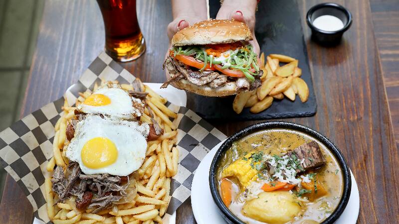 Si se trata de opciones para compartir, te puedes tentar con alguna de las chorrillanas, como la especial ($18.000), con papas fritas, choricillo, mechada, cebolla, caramelizada, huevos y cebollín.