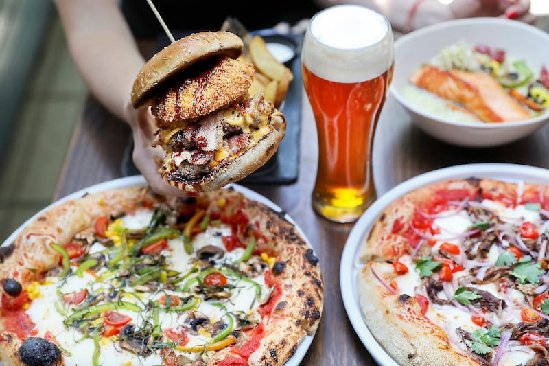 También sándwiches, como la hamburguesa Dante ($ 9.900), que viene con tocino, relish de pepino, que es una salsa de textura más rústica, viene con los trocitos de pepino, lechuga, lactonesa, queso cheddar y salsa barbecue en frica.