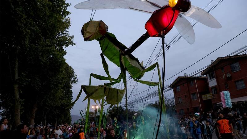 Un asombro que también está generando el desfile de insectos de la compañía catalana Sarruga Produccions, que tuvo su estreno en la Región Metropolitana el pasado 6 de enero en Paine.