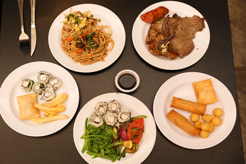 Eso, además de un gran buffetde consumo ilimitado, con alternativas que incluyen sushi,ceviche, papas duquesa, papas fritas, lasaña, ensalada o comida china, por ejemplo.
