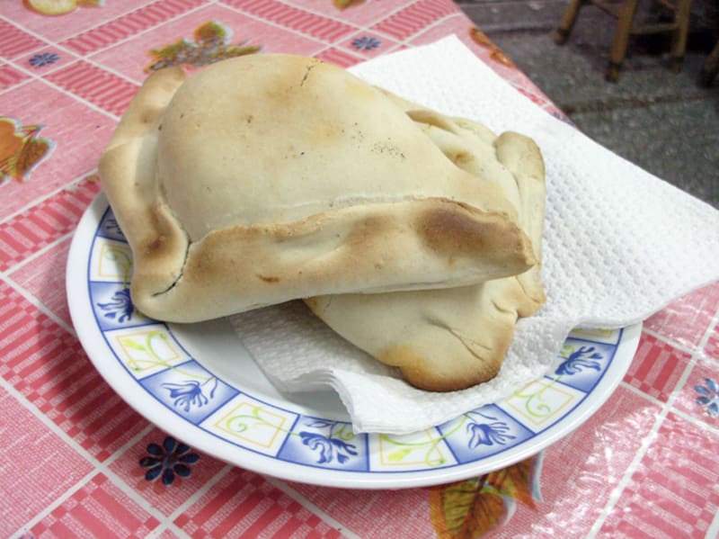 Y, se refería al tradicional pequén, de masa de harina, sal y manteca, rellenos con cebolla cruda adobada con ají color y picante, más un trozo de huevo duro y nada más. Los mismos que hasta el cierre de la Fábrica de Pequenes Nilo cerró en 2016, se ofrecían con té, en un local del Mercado Central.