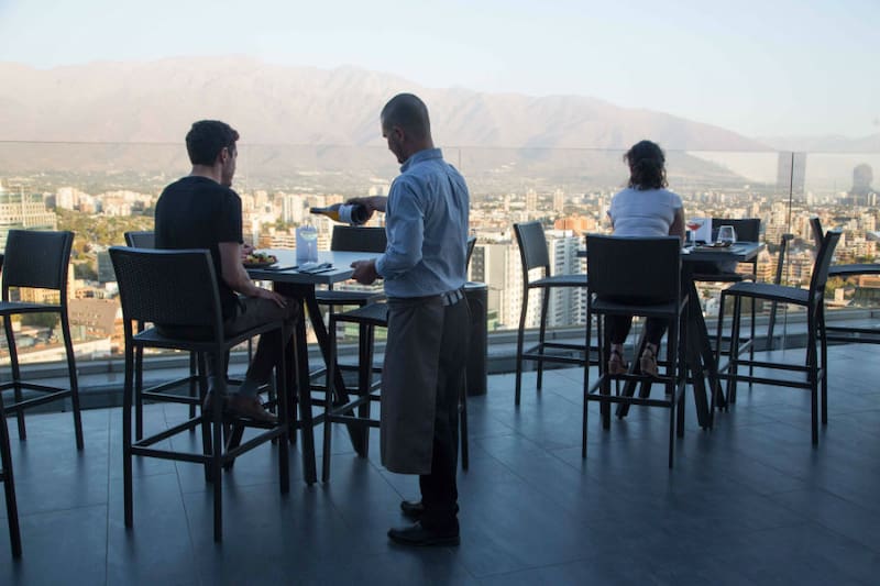 Otra de las características de este lugar es que tiene unas terrazas increíbles, porque al estar en los últimos pisos del edificio podrás ver Santiago prácticamente en 360°.