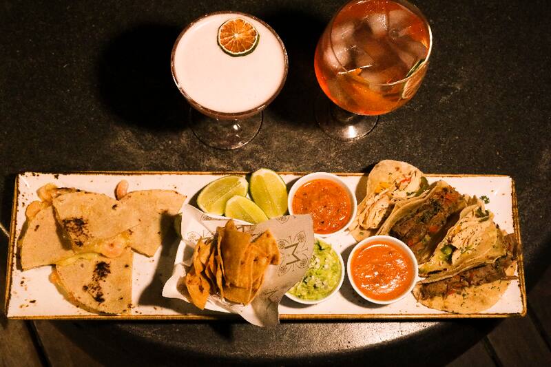 O el ¡Órale pues! ($ 21.300), una tabla mexicana, con quesadillas de camarones; tacos con carnita de res, tacos de pollo, nachos, salsa jalapeño y huacamole.