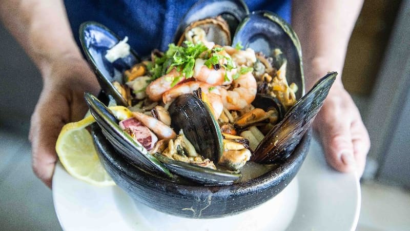 También otras opciones más elaboradas como la paila marina ($ 5.800), que viene con una buena cantidad de camarones, choritos y pulpo.