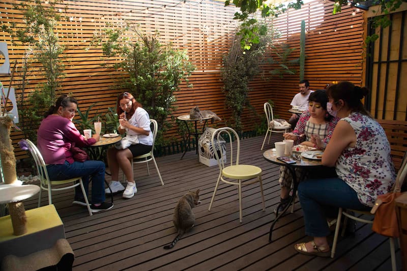 Todos fueron adoptados por su personalidad, bien sociable y cercana, por lo que es muy probable que mientras estás ahí se suban a tu mesa o, incluso, algunos más traviesos intenten robarte algo de tu plato.